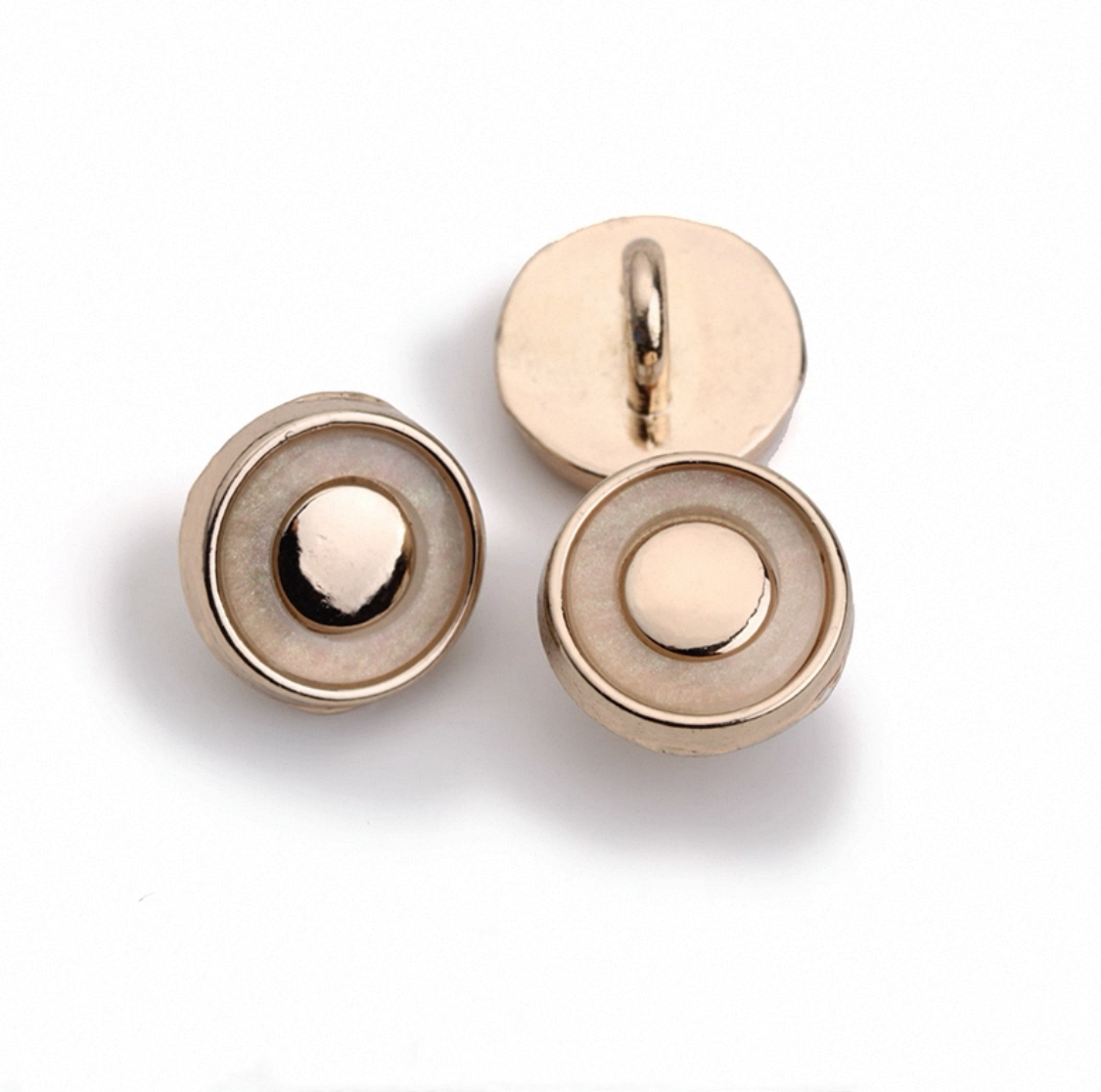 属性:精致藏于细节,这组小香风金属珍珠扣,是时尚的秘密注脚。10mm 的尺寸恰到好处,金底搭配浅咖或黑色,营造出经典又不失个性的视觉效果。圆润金属珠点缀其中,质感满满。无论是外套还是裙装,轻轻扣上,即刻赋予衣物小香风的优雅与奢华。