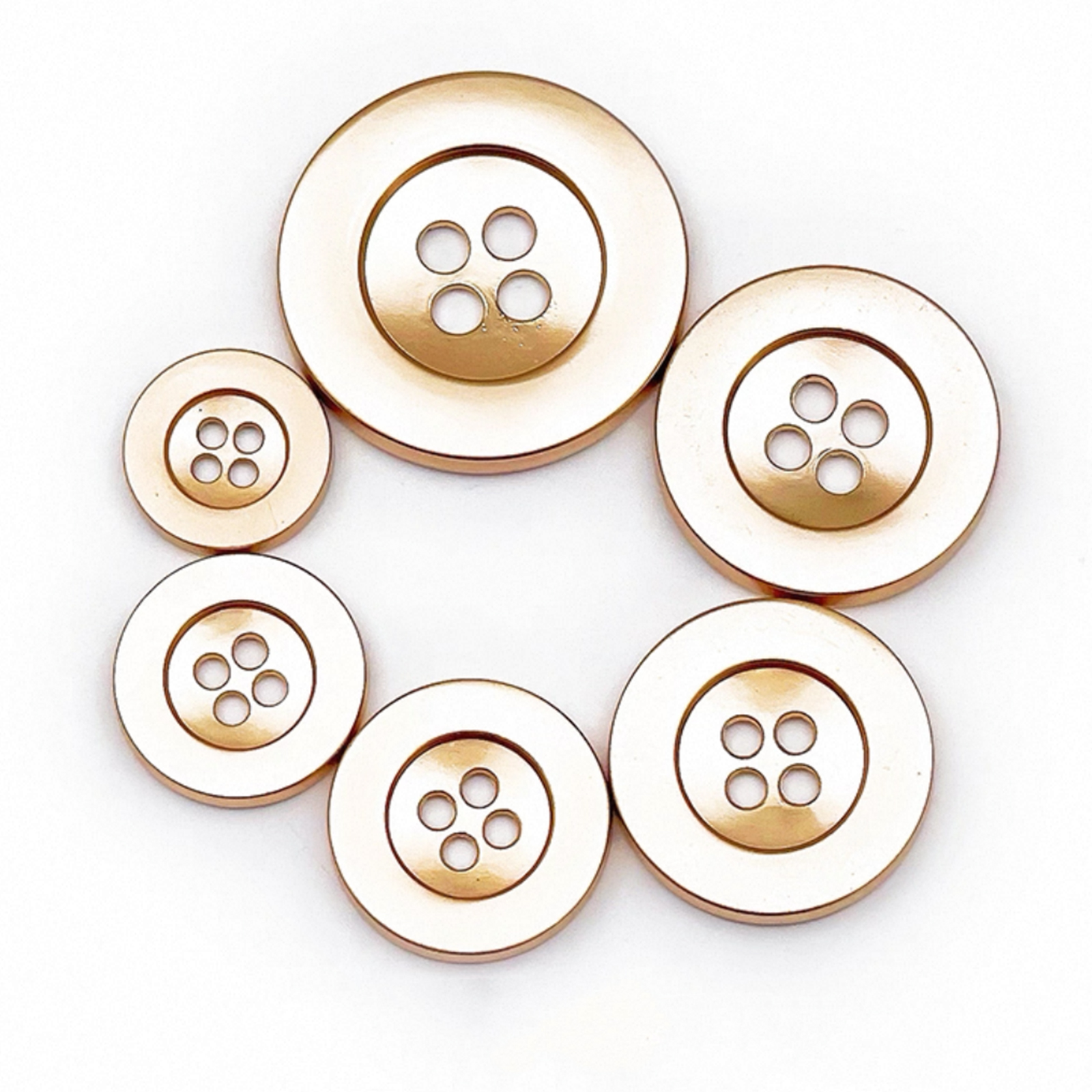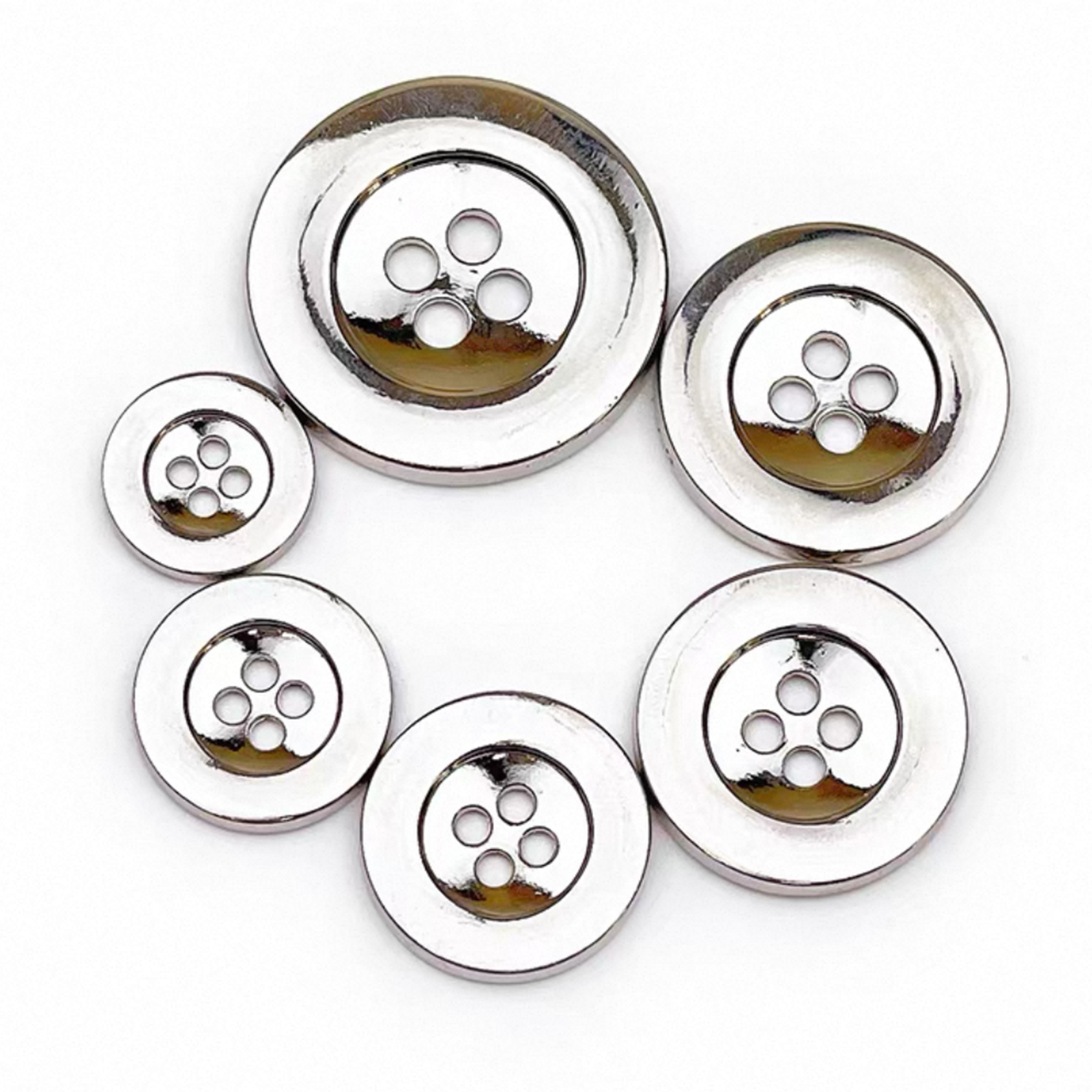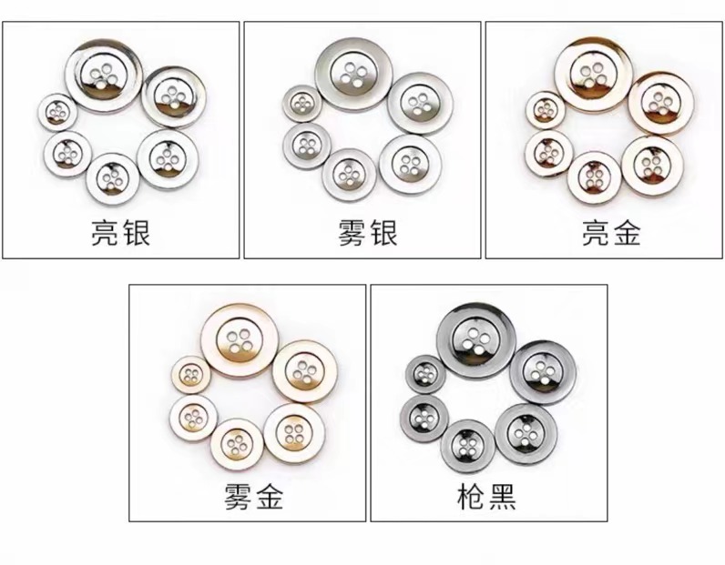 属性:时尚圆形四眼金属宽边纽扣,亮银 / 雾银 / 亮金 / 雾金 / 枪黑多色可选, 宽边设计简约大气,金属质感自带高级感,适配西装、衬衫等各类服饰。一颗纽扣,就能为穿搭注入精致灵魂,轻松拿捏时尚格调。