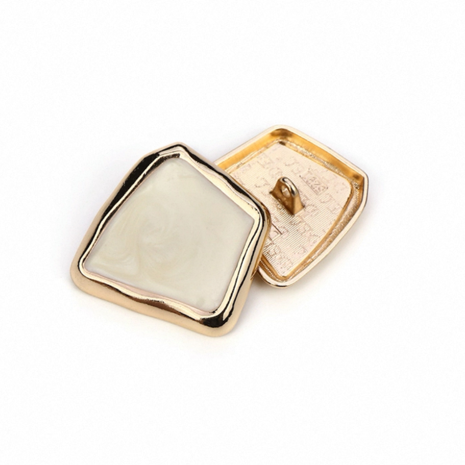 属性:亮金异型纽扣,不规则边框 + 金属质感超吸睛, 奶白温润、雅黑深邃,适配大衣,为穿搭添艺术感,一颗就能打破沉闷,让冬日衣装自带高级氛围,时尚达人必备。
