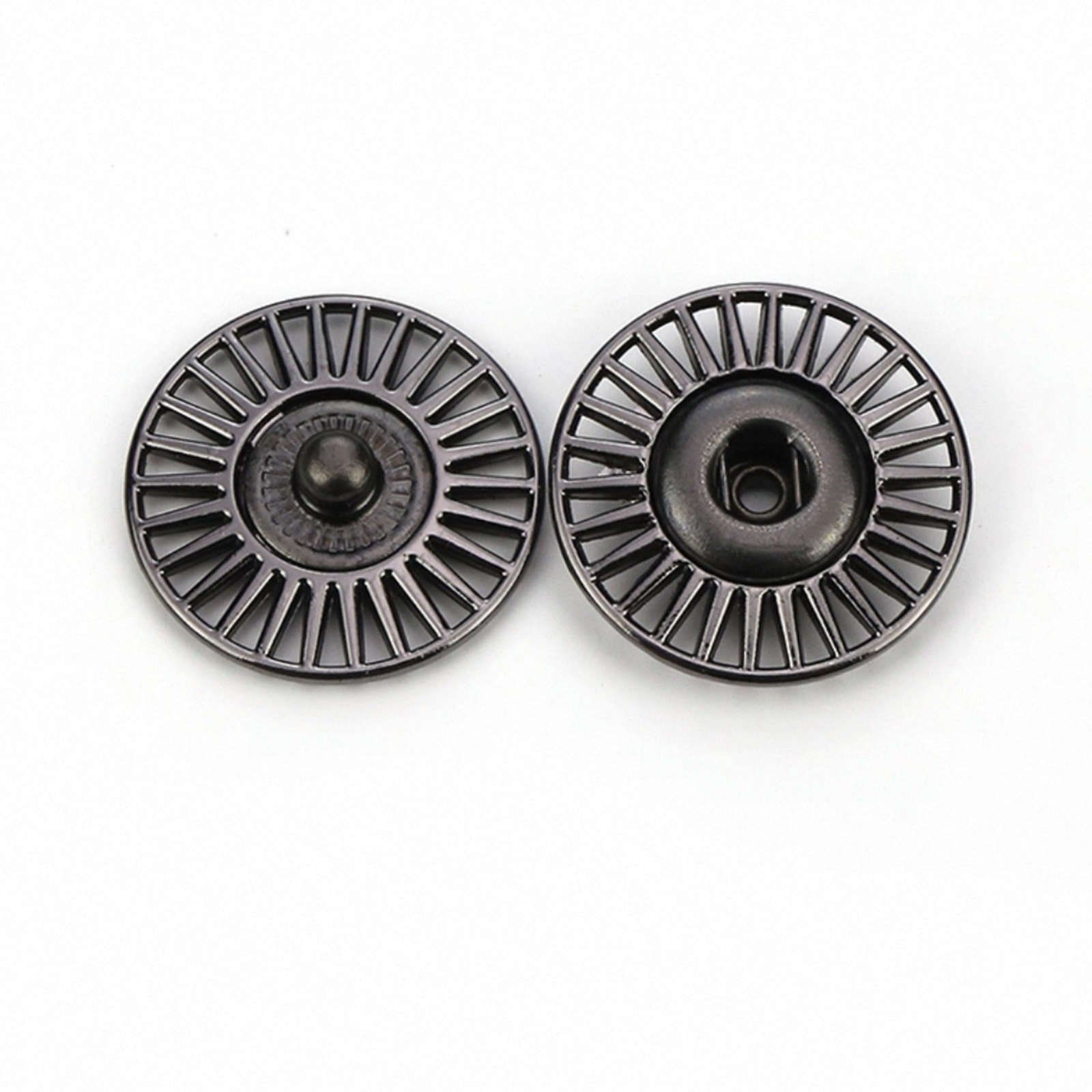属性:枪色金属大衣暗扣直径 20MM,精致轮辐造型,低调藏于衣襟间,一按一合,稳固又优雅。金属质感适配各类大衣,为穿搭添实用巧思,让细节处尽显品质,轻松提升冬日着装精致度。