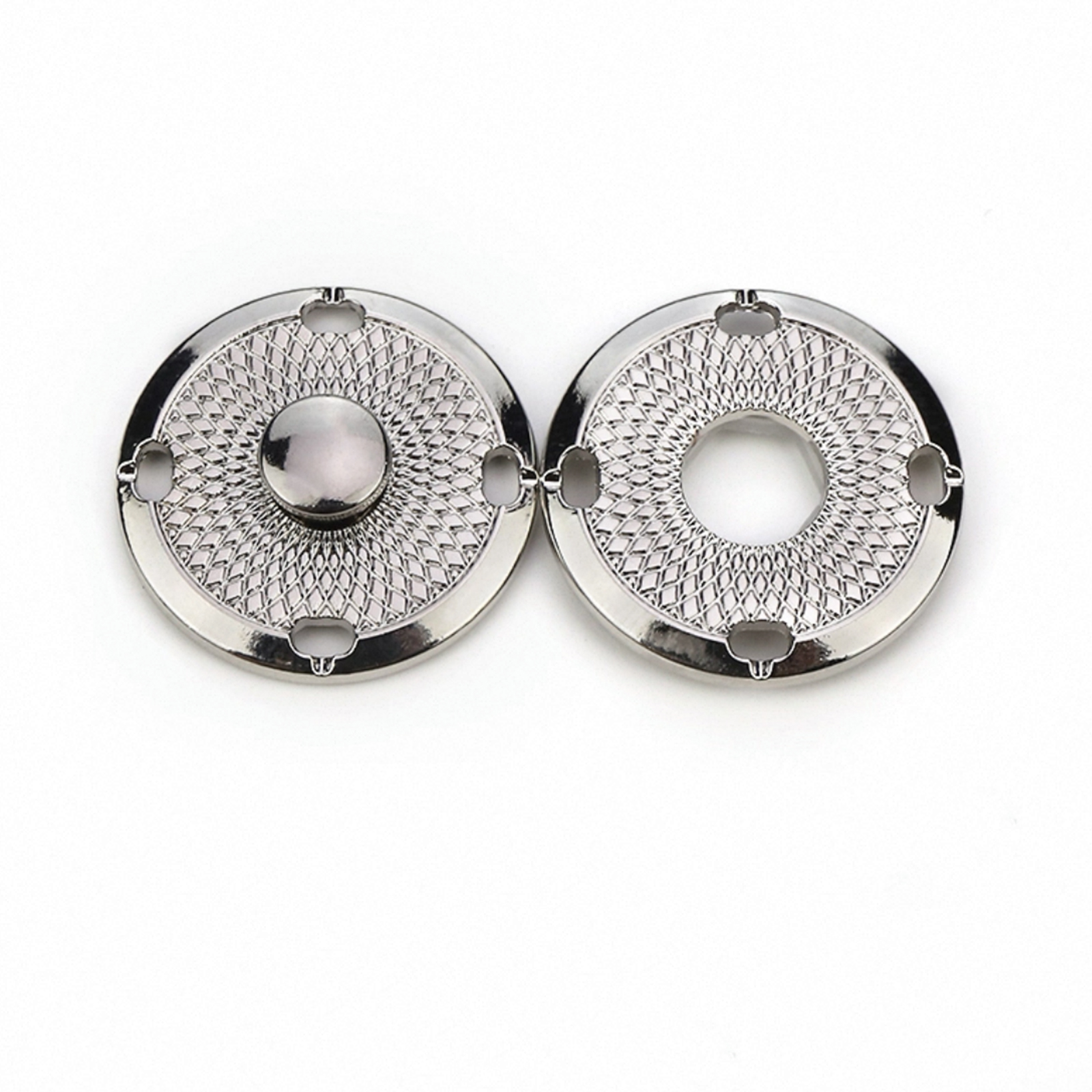属性:银色金属大衣暗扣,23MM 规格 精致镂空纹理,如细密织网,银色光泽清冷高级。暗藏衣襟间,扣合稳固又添细节,适配大衣、风衣等,用低调金属质感,为冬日穿搭注入精致巧思,隐秘处见品味。