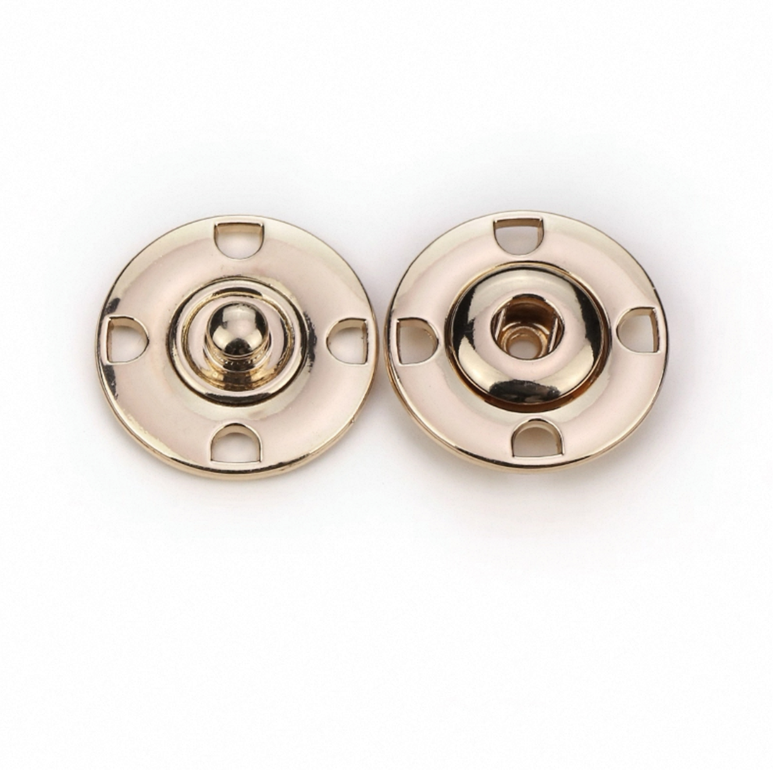 属性:金色暗扣,22MM 藏精致,圆润金属面,光泽温润显贵。多孔设计适配大衣,扣合利落又添细节。像藏在衣襟的小金碟,为毛呢、风衣注入低调华丽,轻轻一扣,锁住温度与质感,让穿搭在细节处胜出。