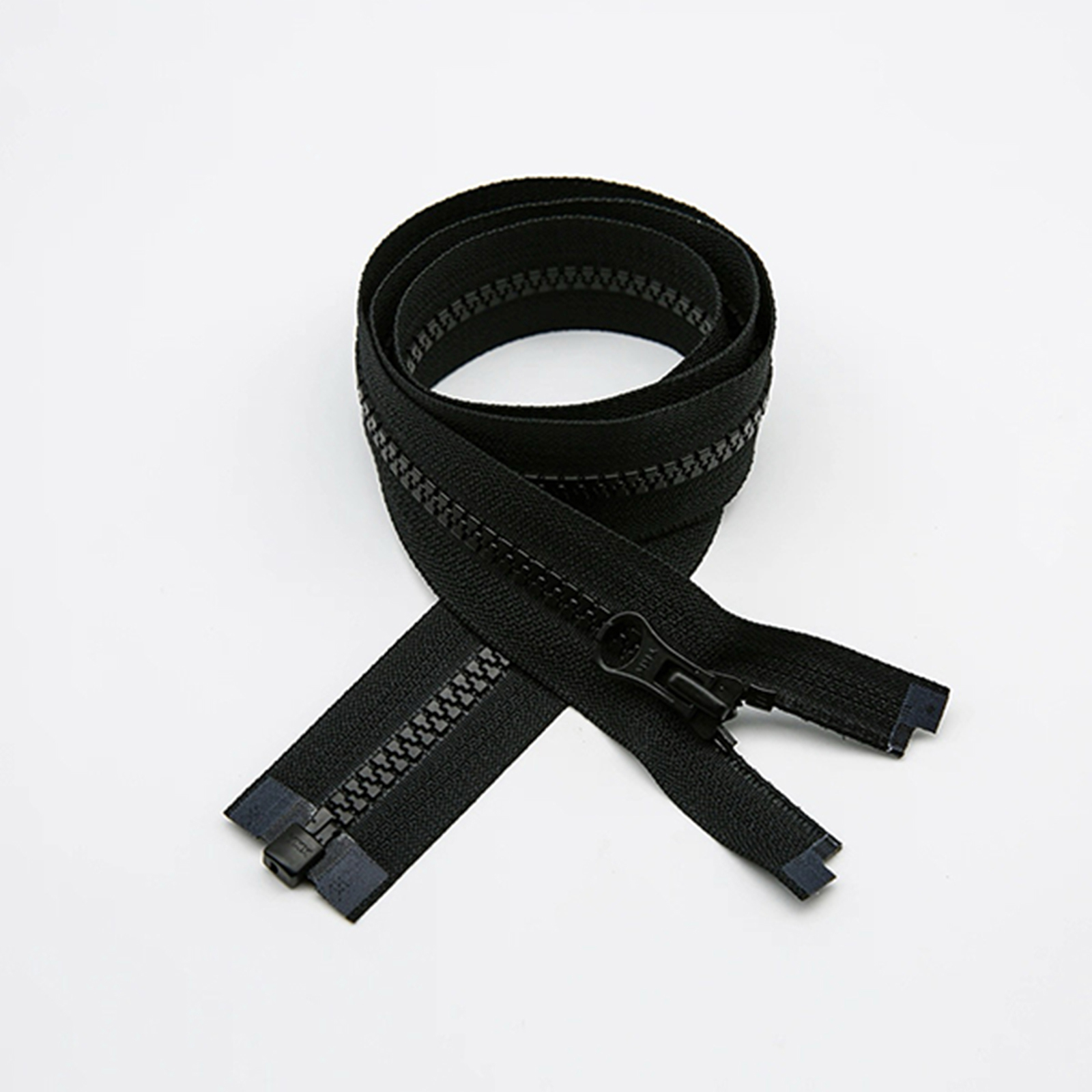 属性:优选高韧性环保树脂,经精密注塑成型链牙,耐磨抗折且不易变形,低温环境下仍保持柔韧。开尾结构搭配顺滑插销,插拔轻松不卡滞,适配外套、童装等需便捷穿脱场景。拉头内置防滑锁止,闭合后稳固防滑,兼顾轻盈质感与实用属性,为服饰细节注入可靠便捷性。