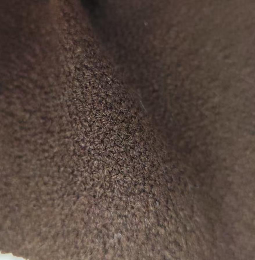 属性:复古深棕色调,表面肌理细密蓬松,触感柔软温润。具有出色的挺括度与保暖性 吸湿透气、弹性佳、不易起球等优点,同时具备天然的抗皱能力,穿着后能快速恢复平整状态,是高端服装与家居面料的优选材质。适用于春秋冬季服装