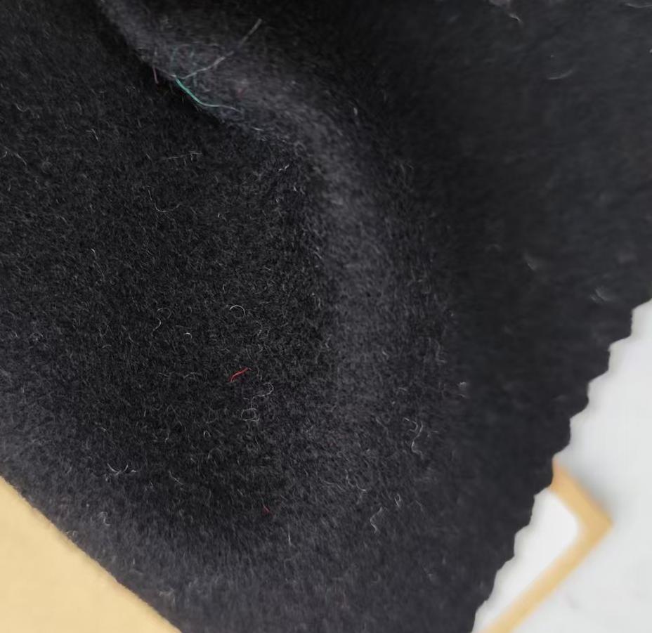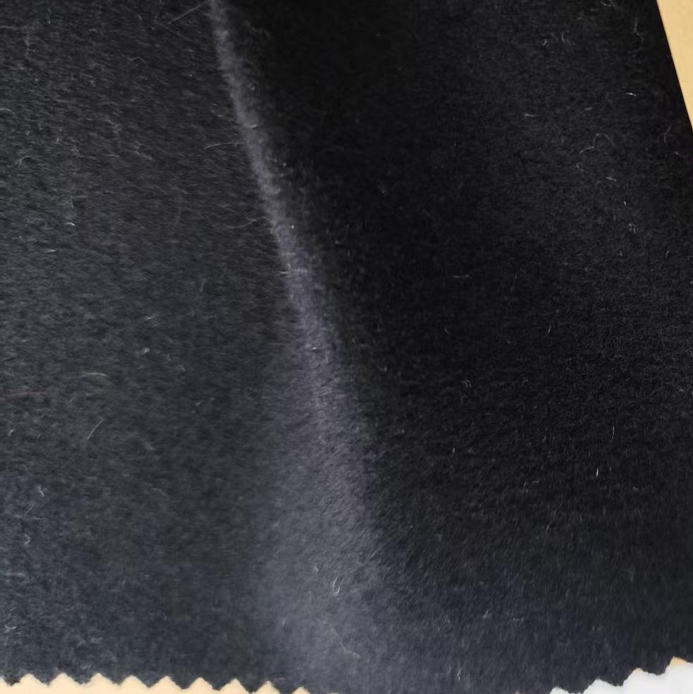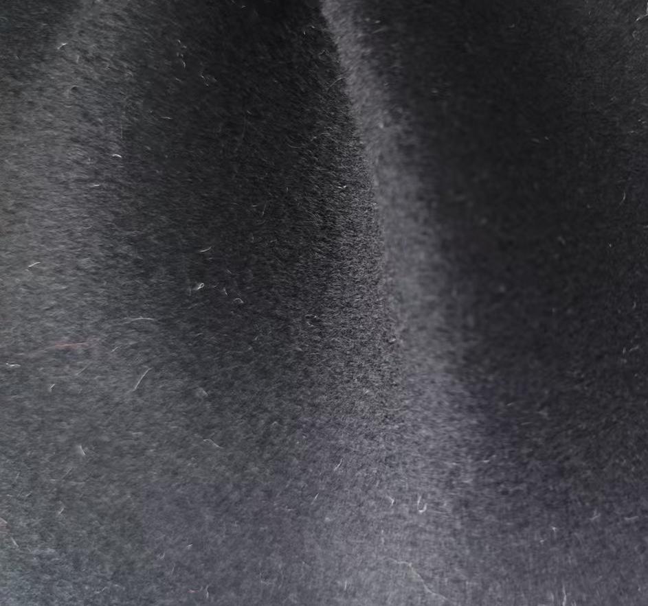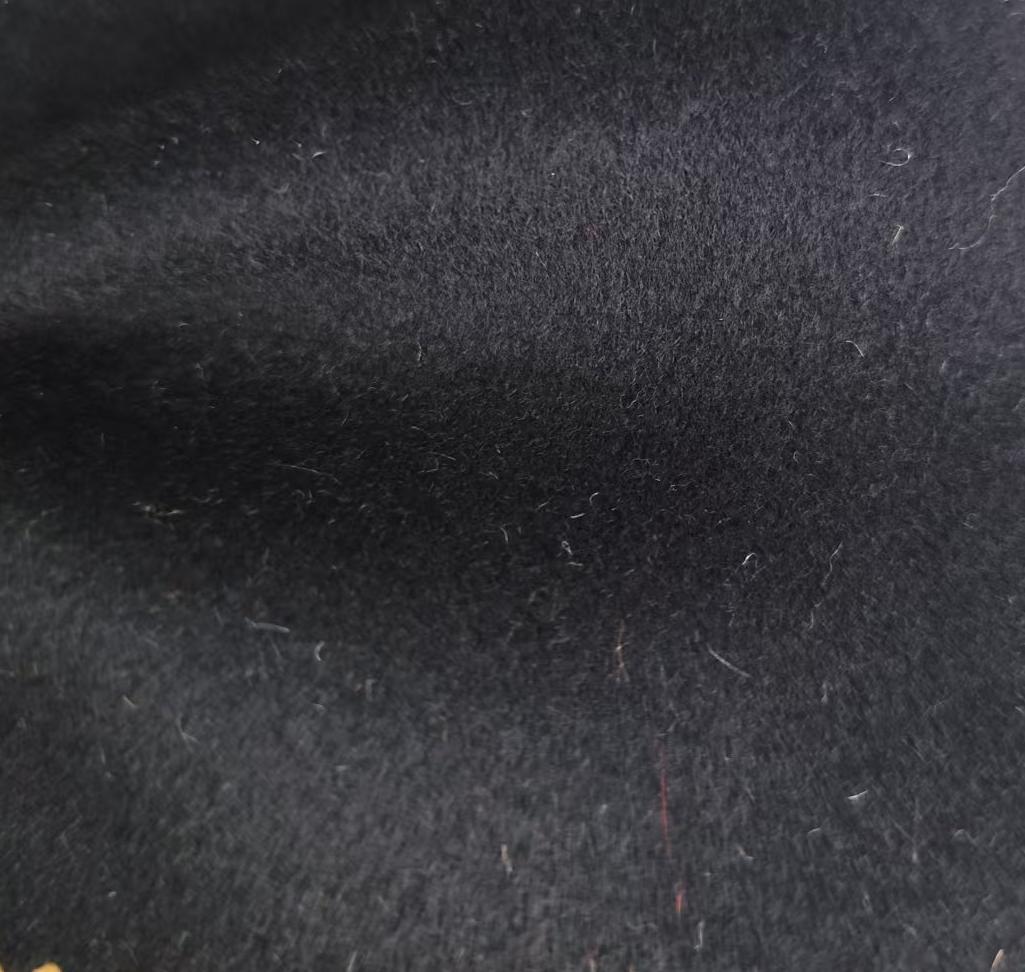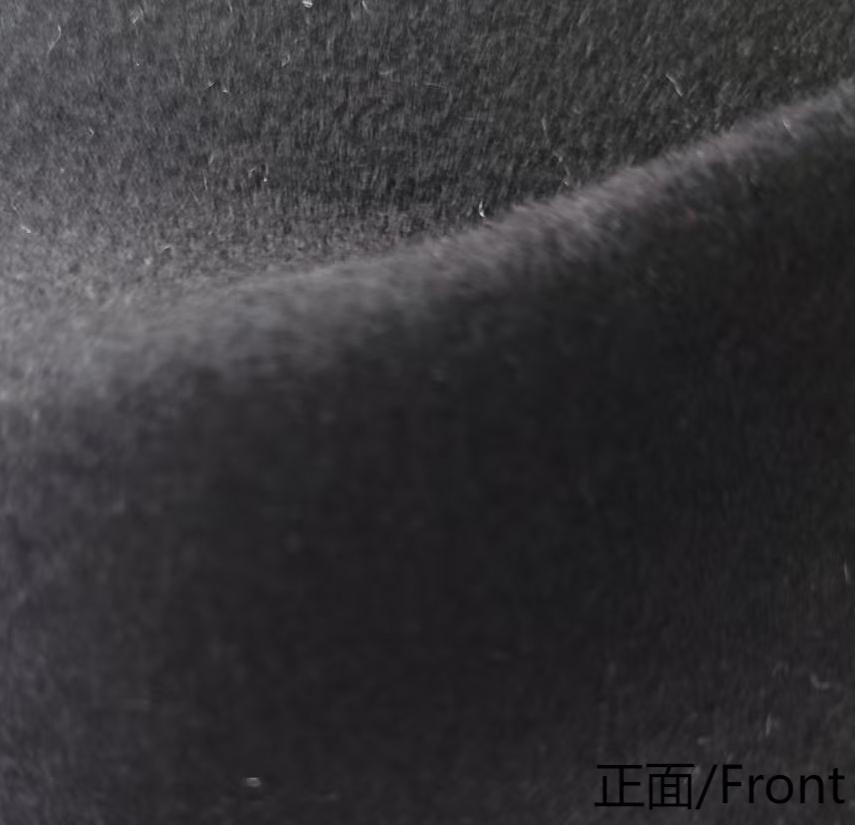 属性:面料呈高级深黑色,绒面细腻柔软,触感温润亲肤 羊毛保留吸湿保暖、弹性佳的特性,醋酸纤维增强面料垂坠感与抗皱性,兼顾舒适与质感。