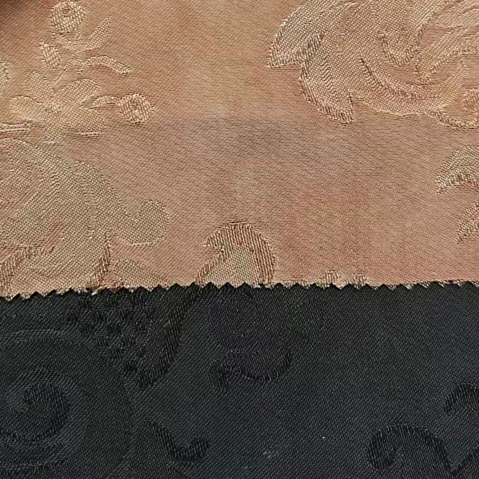 属性:提花肌理面料结合特殊工艺,形成了具有独特视觉和触觉效果的面料。这种组合既展现了提花肌理的立体感和丰富触感,又通过后整染技术增添了复古和自然的风格,创造出个性化且富有艺术感的外观。