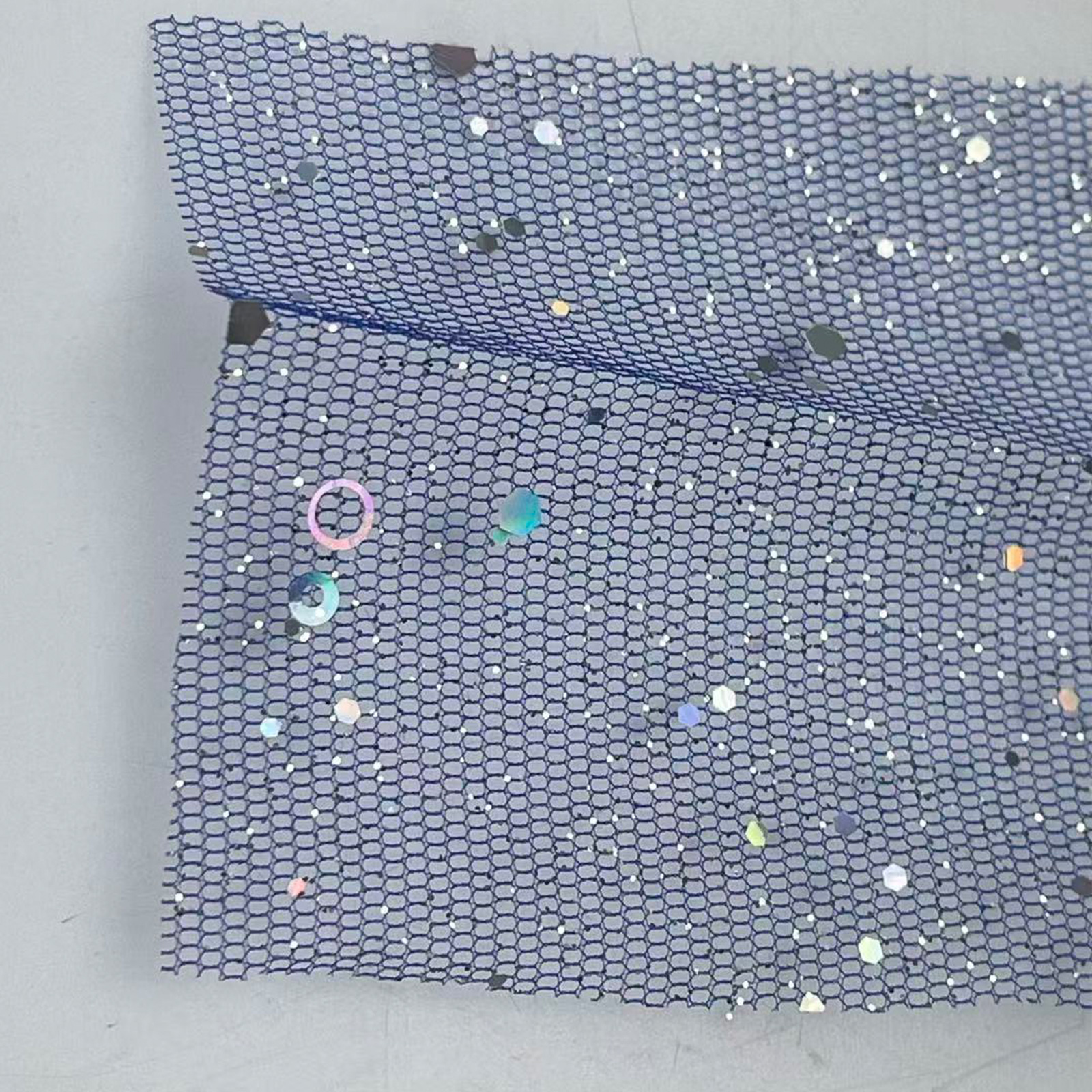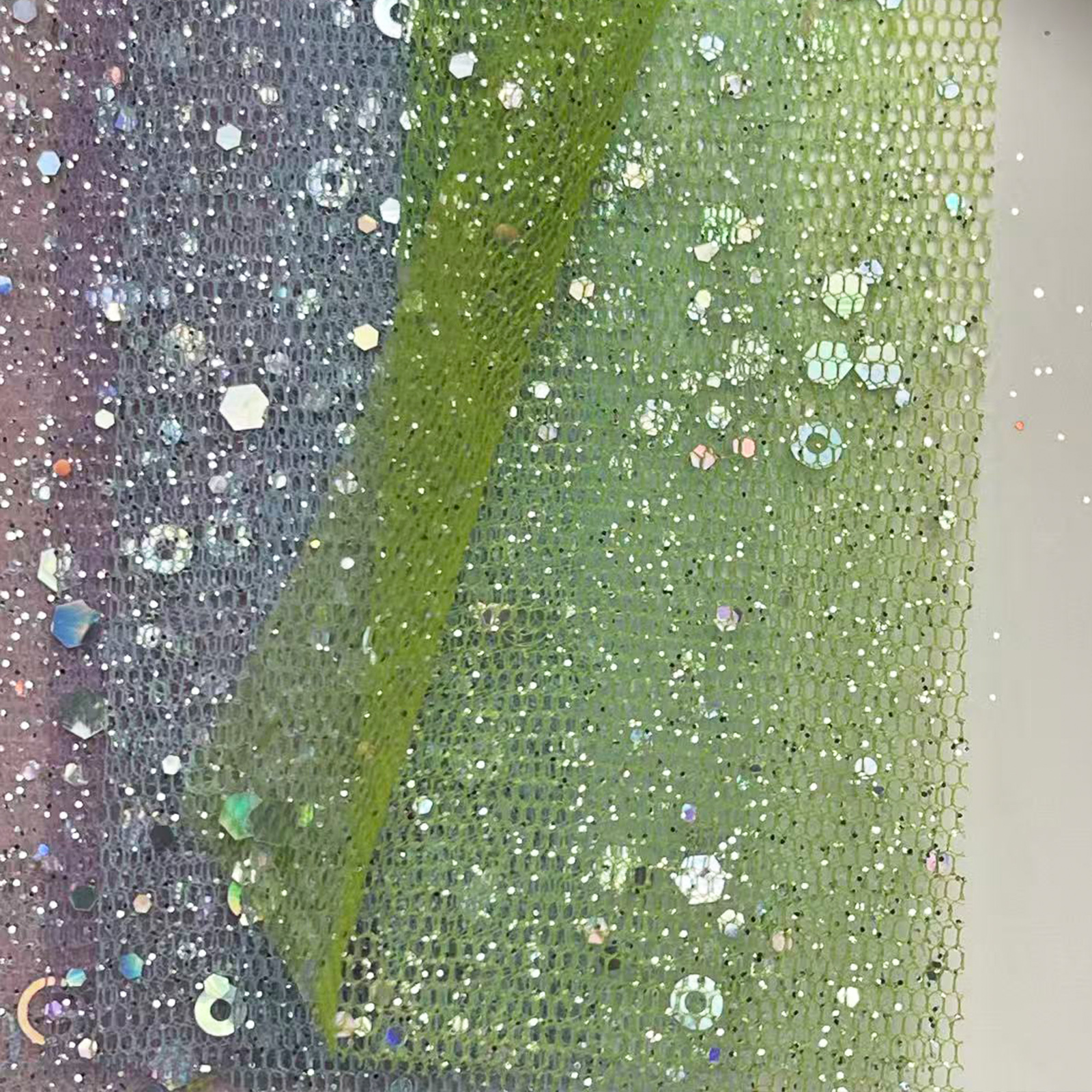 属性:硬挺彩纱为底,高密度钉珠亮片,光泽璀璨、反光强烈。质地挺括有型、塑形佳,色彩绚丽。