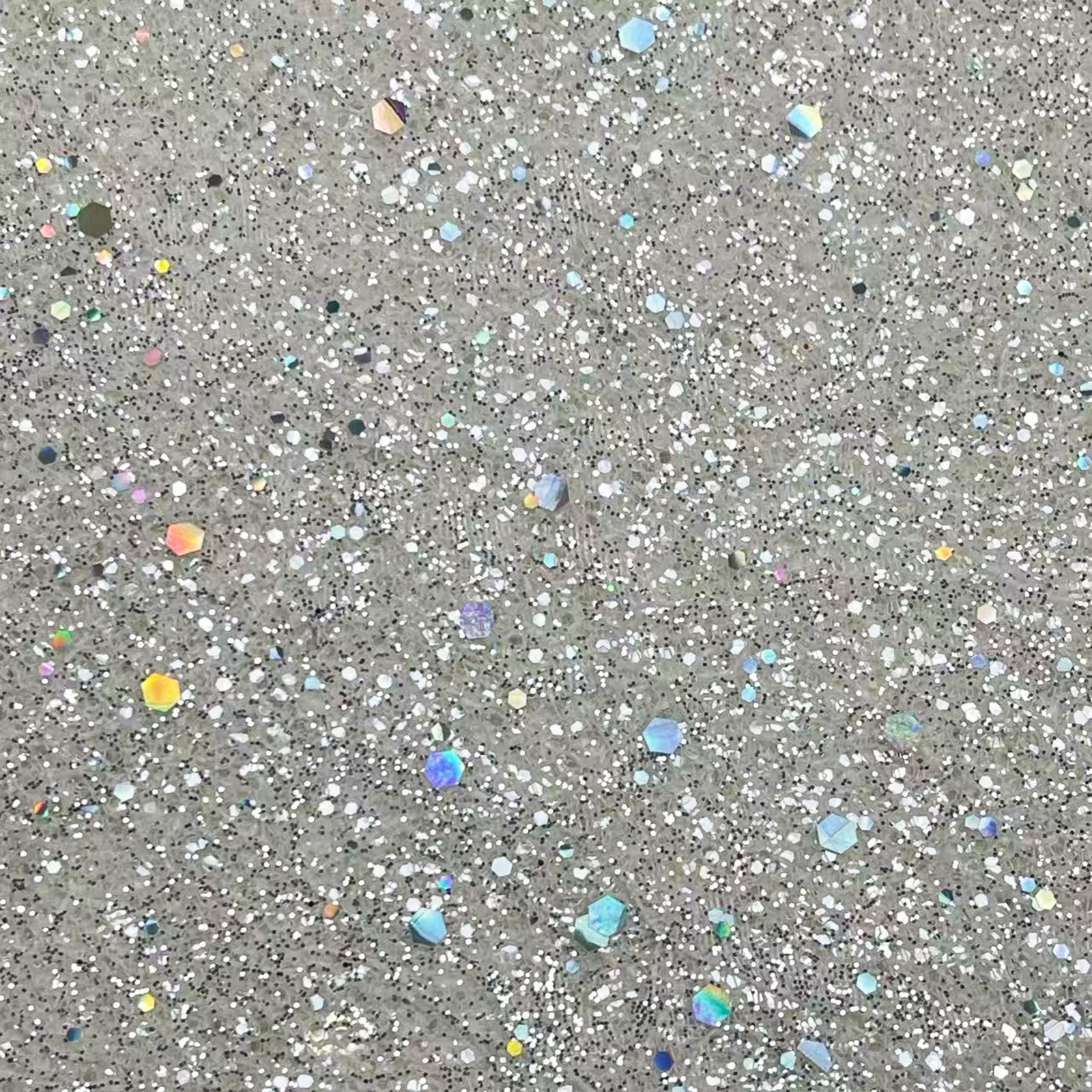 属性:精致蕾丝底布镶嵌银闪亮片,冷调光泽清透亮眼。面料挺括有型、不易软塌,肌理立体精致,耐磨不掉片。灯光下银辉闪耀,适配舞台礼服与造型服饰。