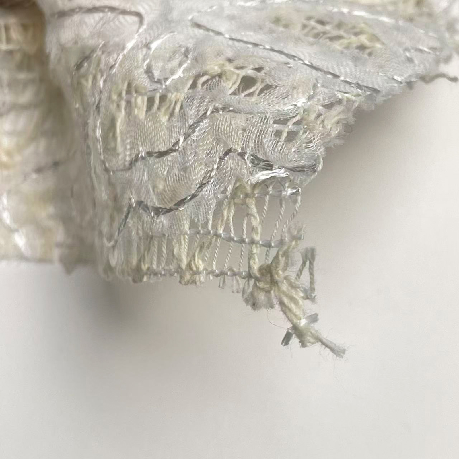 属性:网格网布为基底,肌理清晰立体。面料通透轻盈,透气性良好,绣线工整牢固,触感柔软亲肤。整体质感细腻雅致,兼具美观与实用性,适用于女装、礼服、舞台服饰及装饰配饰制作。