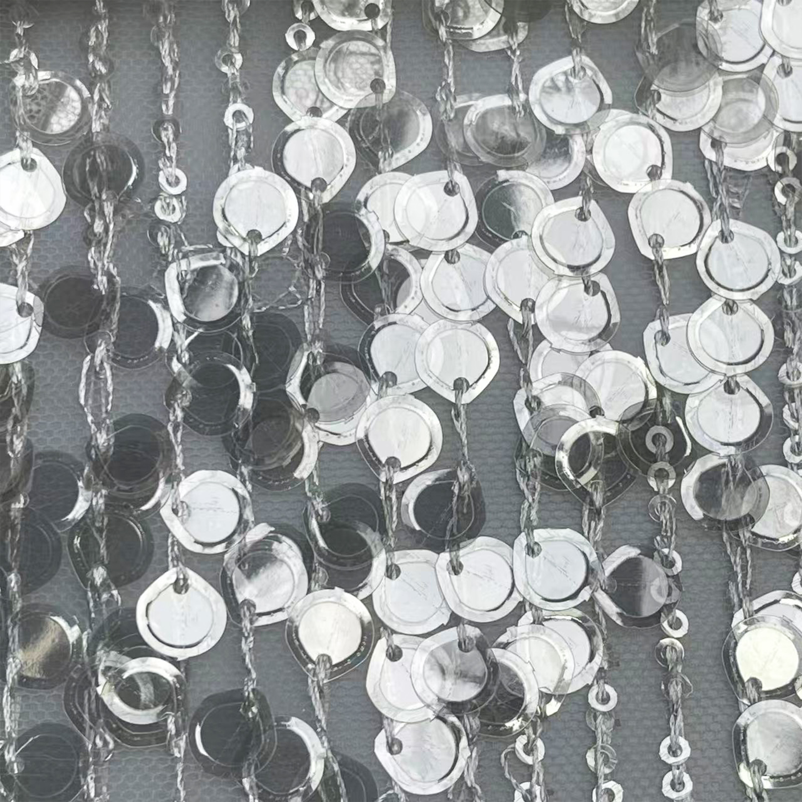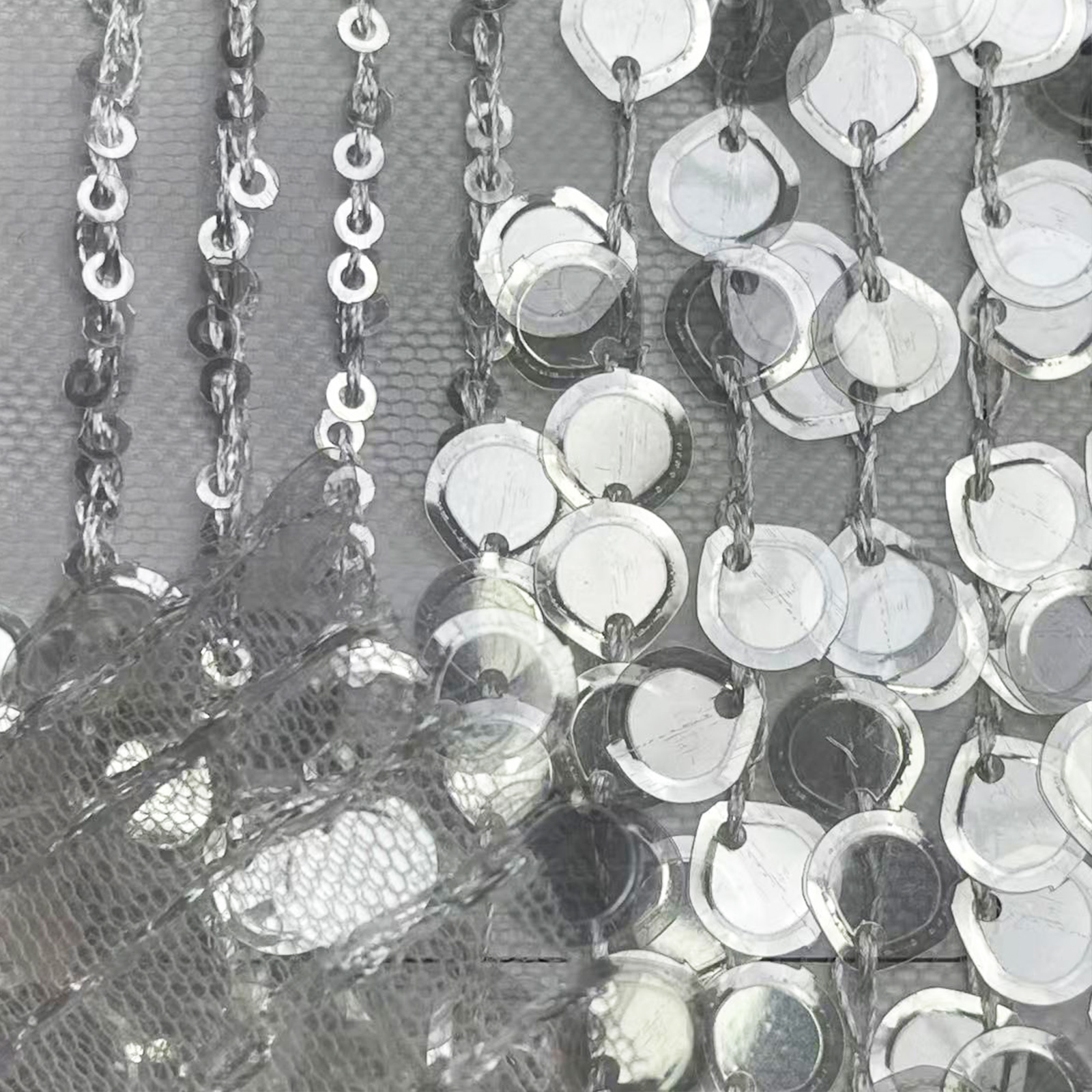 属性:网纱为底,采用珠片绣工艺,按条纹规律排布大小珠片,肌理规整有层次。面料轻盈透气,珠片附着牢固,光泽错落闪耀,垂感柔和。适配舞台演出服、礼服、轻奢时装,视觉精致亮眼。