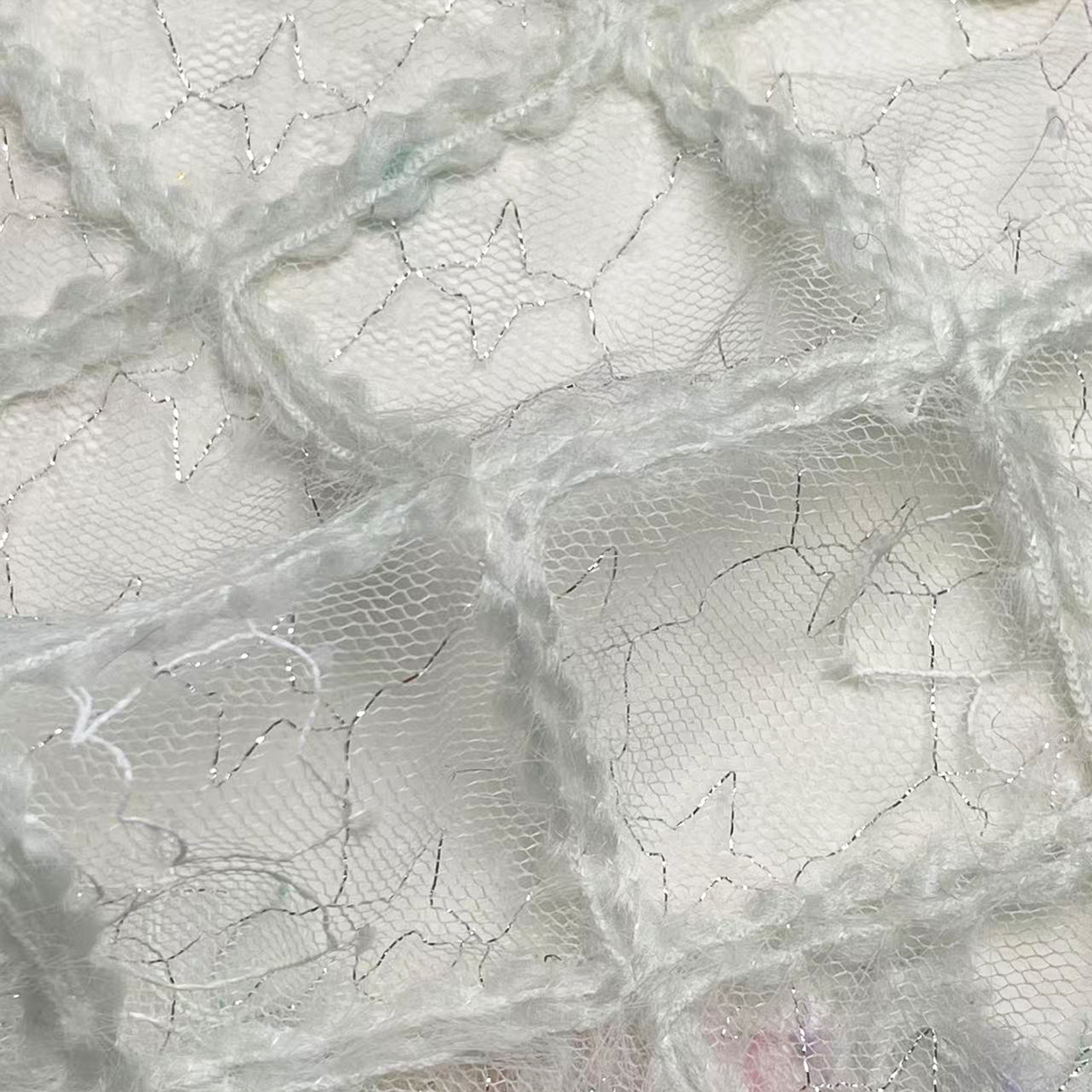 菱形格纹银丝网纱面料