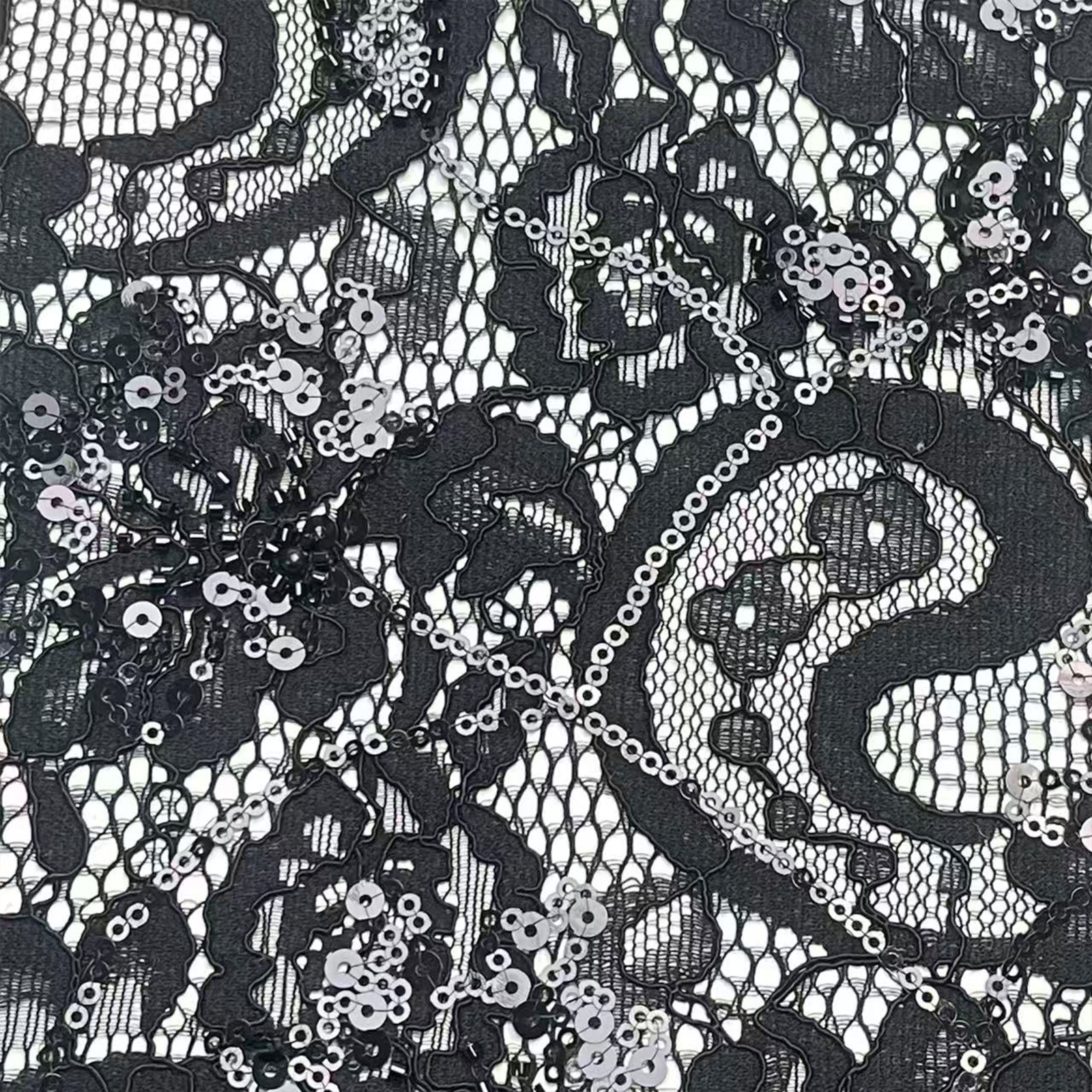 属性:立体股线精工编织蕾丝基底,搭配精致管珠刺绣工艺,花型饱满立体、肌理挺括细腻。面料柔软亲肤、透气舒适,管珠牢固闪耀,层次丰富轻奢有质感。