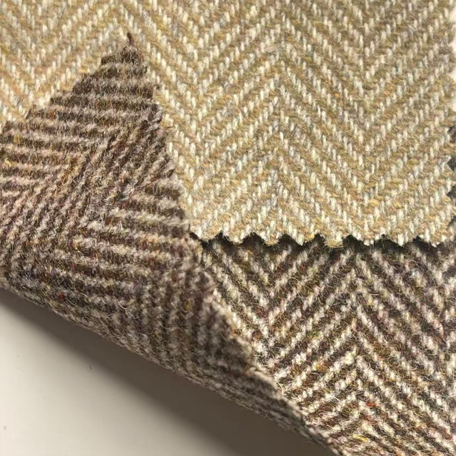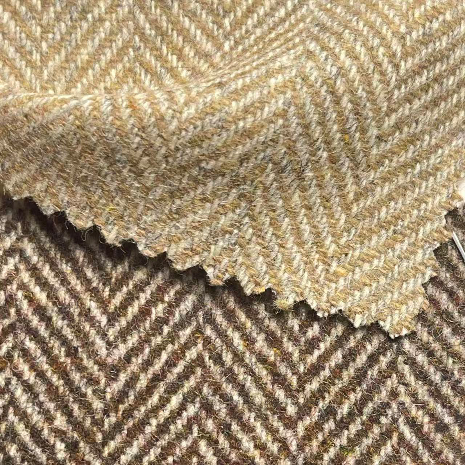 属性:人字肌理清晰立体,布面紧实平整,手感柔糯挺括,保暖舒适,垂顺有型不易皱,易打理不易起球,纹路复古大气,适配秋冬大衣、西装与外套。