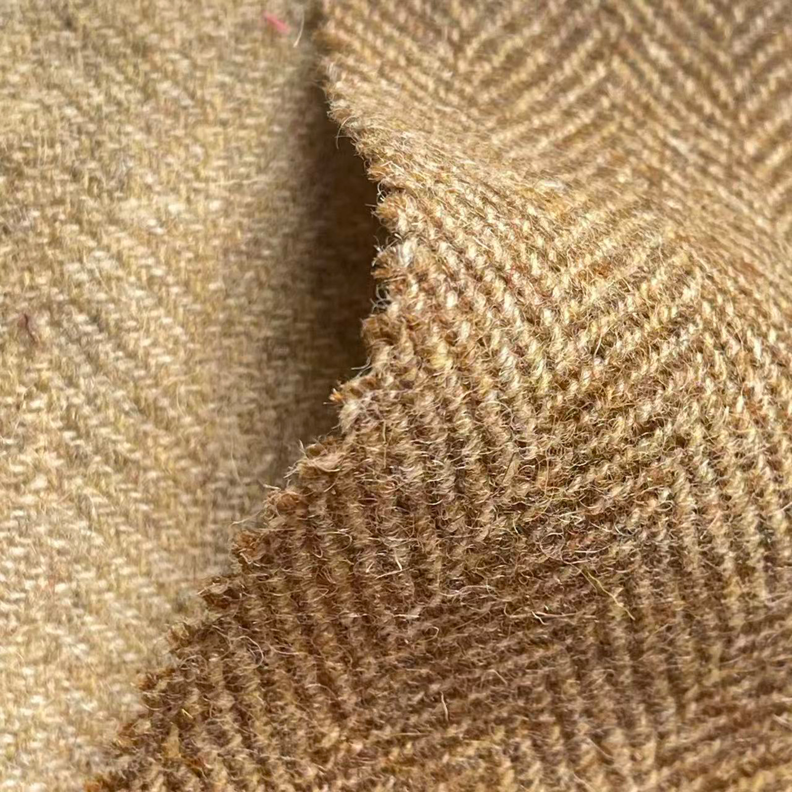 属性:人字肌理清晰挺括,面料密实细腻,手感温润软糯,保暖性出众,垂坠有型、抗皱保形,光泽自然柔和,质感醇厚高级,适合制作高端秋冬大衣与西装外套。
