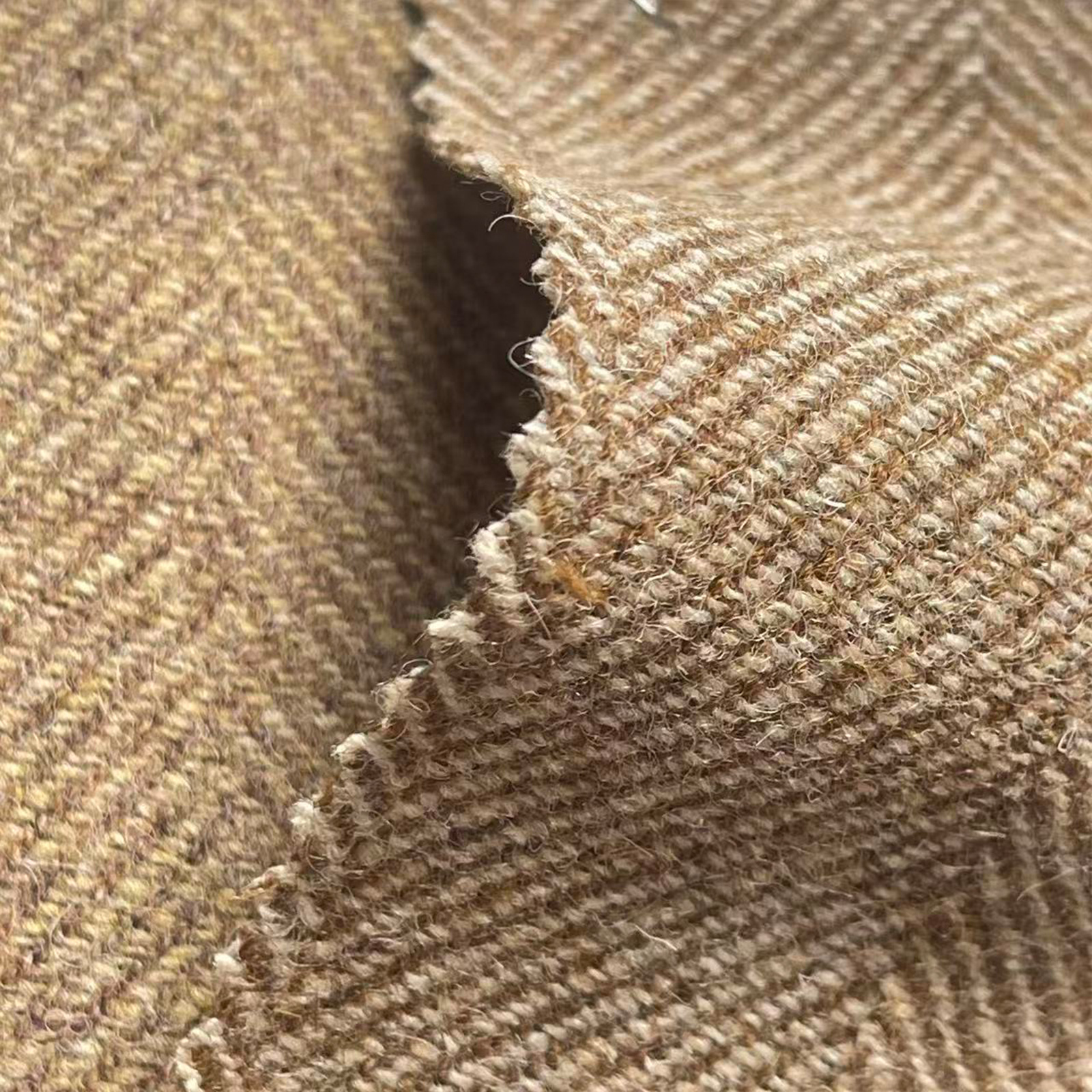 属性:人字纹路利落立体,面料紧实厚重,手感温润顺滑,保暖锁温,垂坠挺括不易变形,光泽自然内敛,质感醇厚考究,适用于高端秋冬大衣、西装及外套制作。