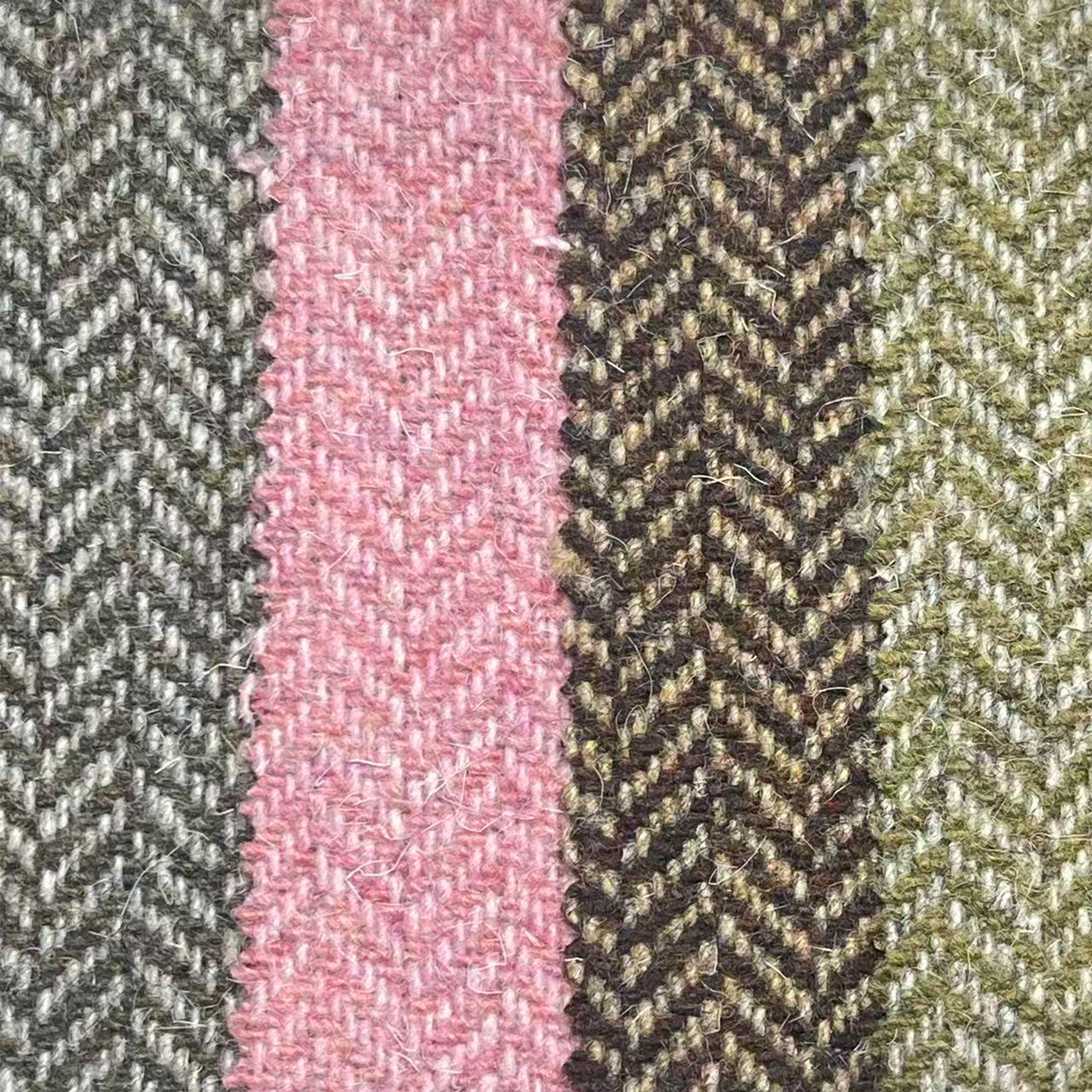 属性:人字纹路清晰挺括,混色纱线层次丰富,布面紧实细腻,手感柔糯有骨感,保暖舒适、垂顺抗皱,日常好打理,质感温柔高级,适合秋冬大衣、西装与外套。