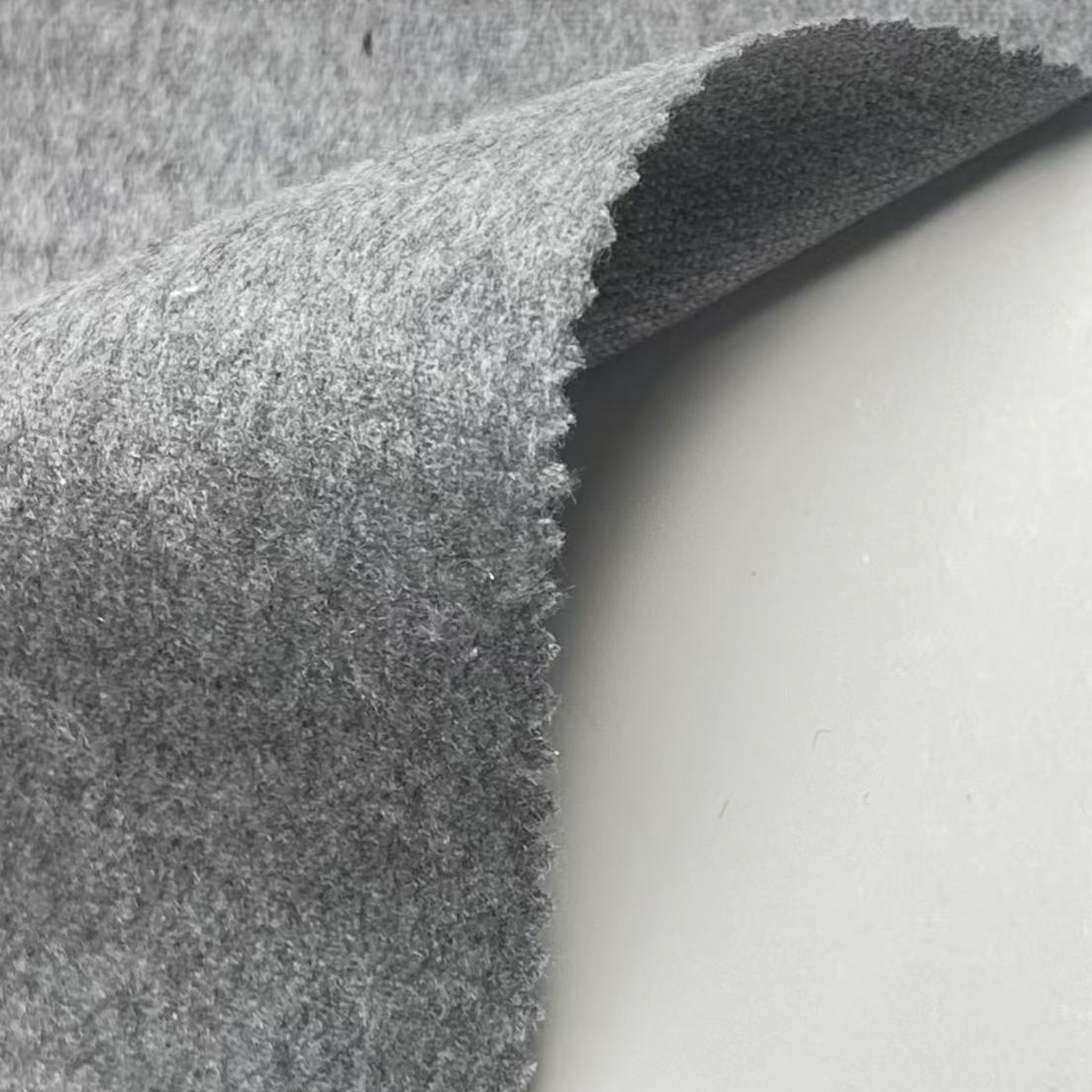 属性:布面光洁细腻,顺毛肌理顺滑服帖,触感柔润亲肤;轻薄克重轻盈无负担,挺括有型、垂顺抗皱,透气舒适,适配春秋西装、薄款外套、轻奢通勤成衣。