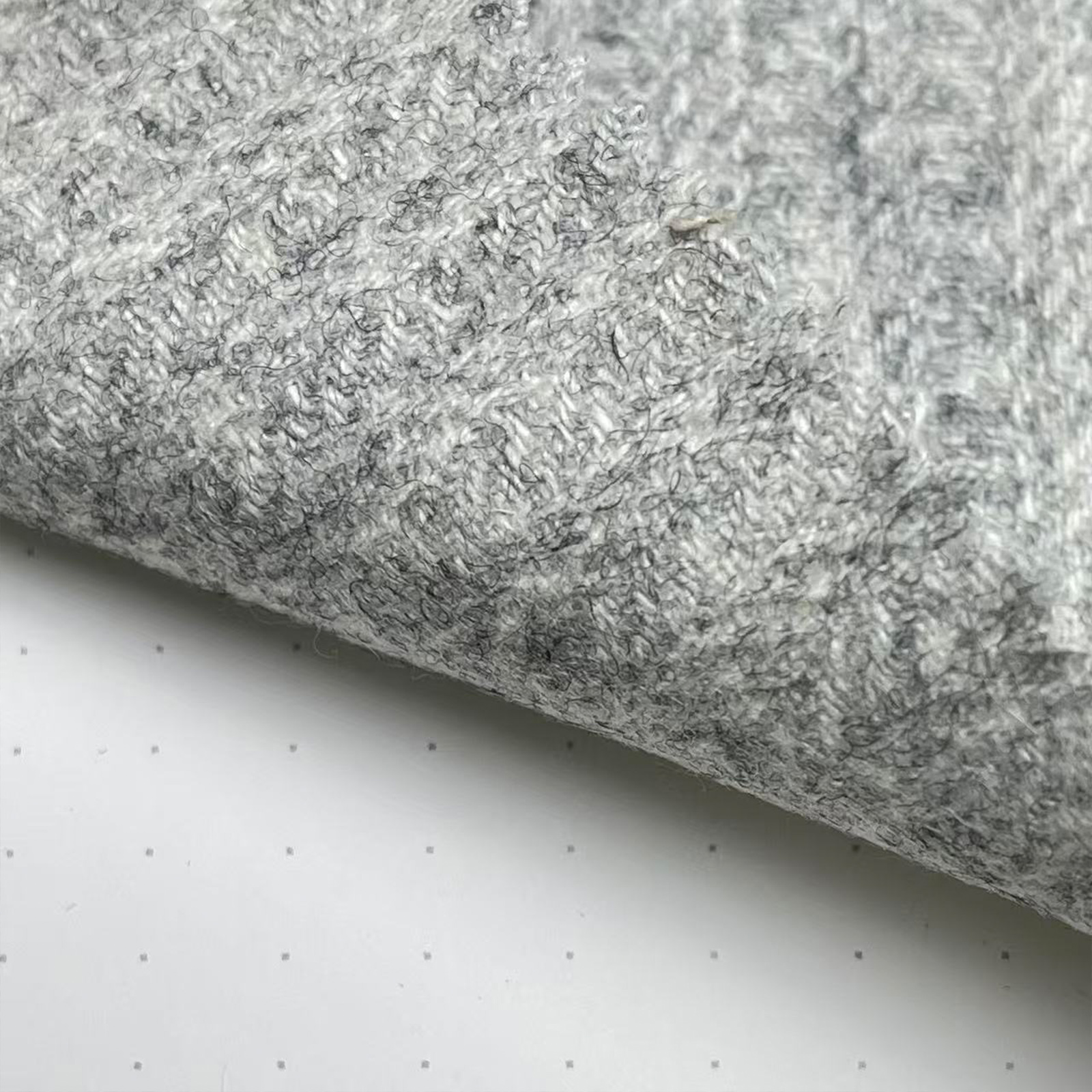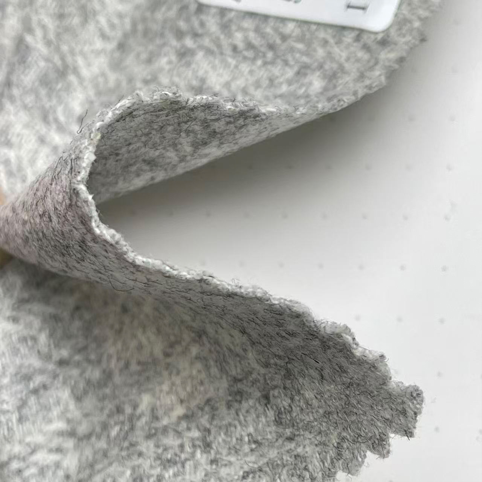 属性:绒感饱满温润,亲肤柔软不扎身,垂顺度佳。兼具羊毛保暖质感与人棉透气舒适度,面料细腻有光泽,穿搭轻盈有型,质感高级。
