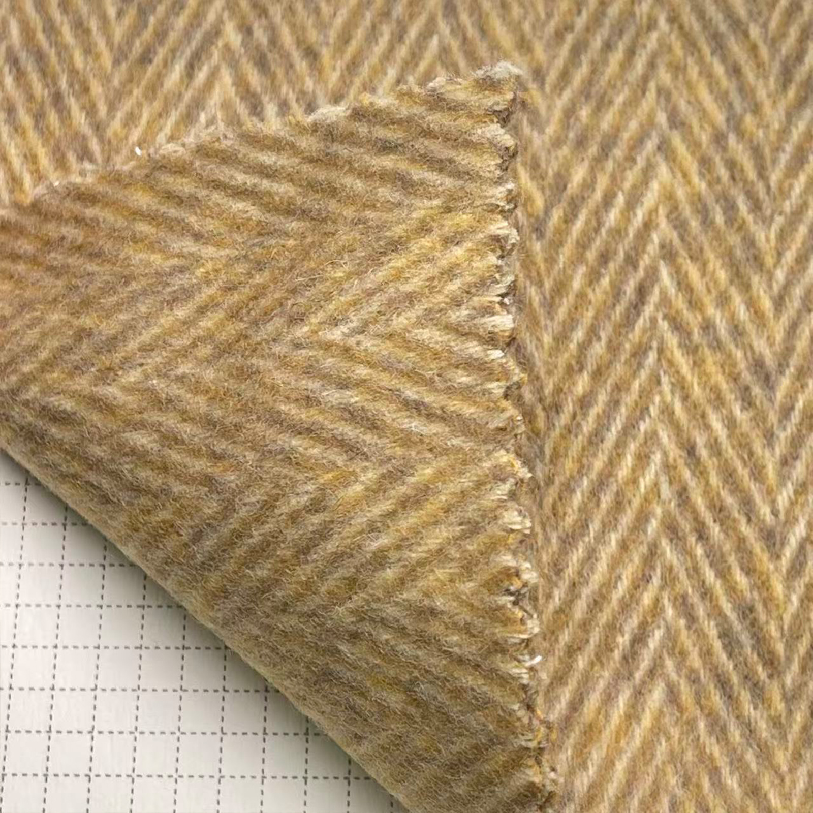 属性:重磅纯羊毛人字纹毛呢,肌理清晰立体、复古格调浓郁,纯羊毛赋予极致软糯绒感与超强御寒力,面料厚实挺括、抗风锁温,垂坠有型且版型稳固,天然光泽温润高级,专为秋冬高端大衣设计,保暖与奢华质感双绝。