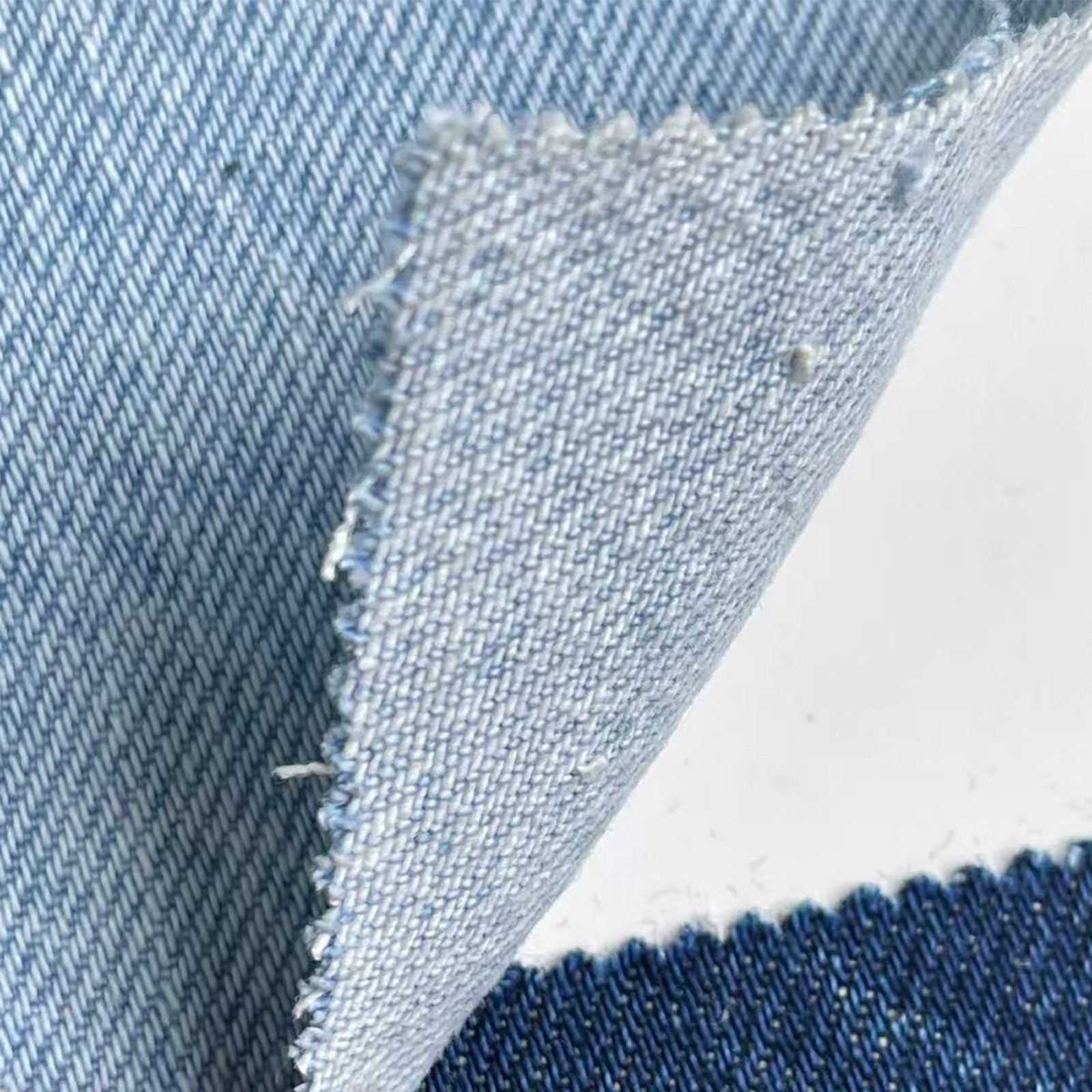 属性:环保工艺牛仔面料,采用温和织造流程,面料安全亲肤,无刺激感。布面均匀平整,手感柔软,结构稳定耐穿。兼顾环保属性与穿着性能,适合注重健康舒适的穿搭人群