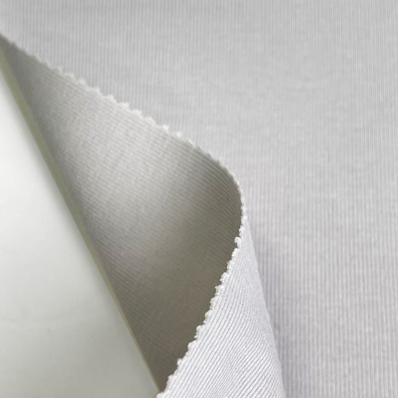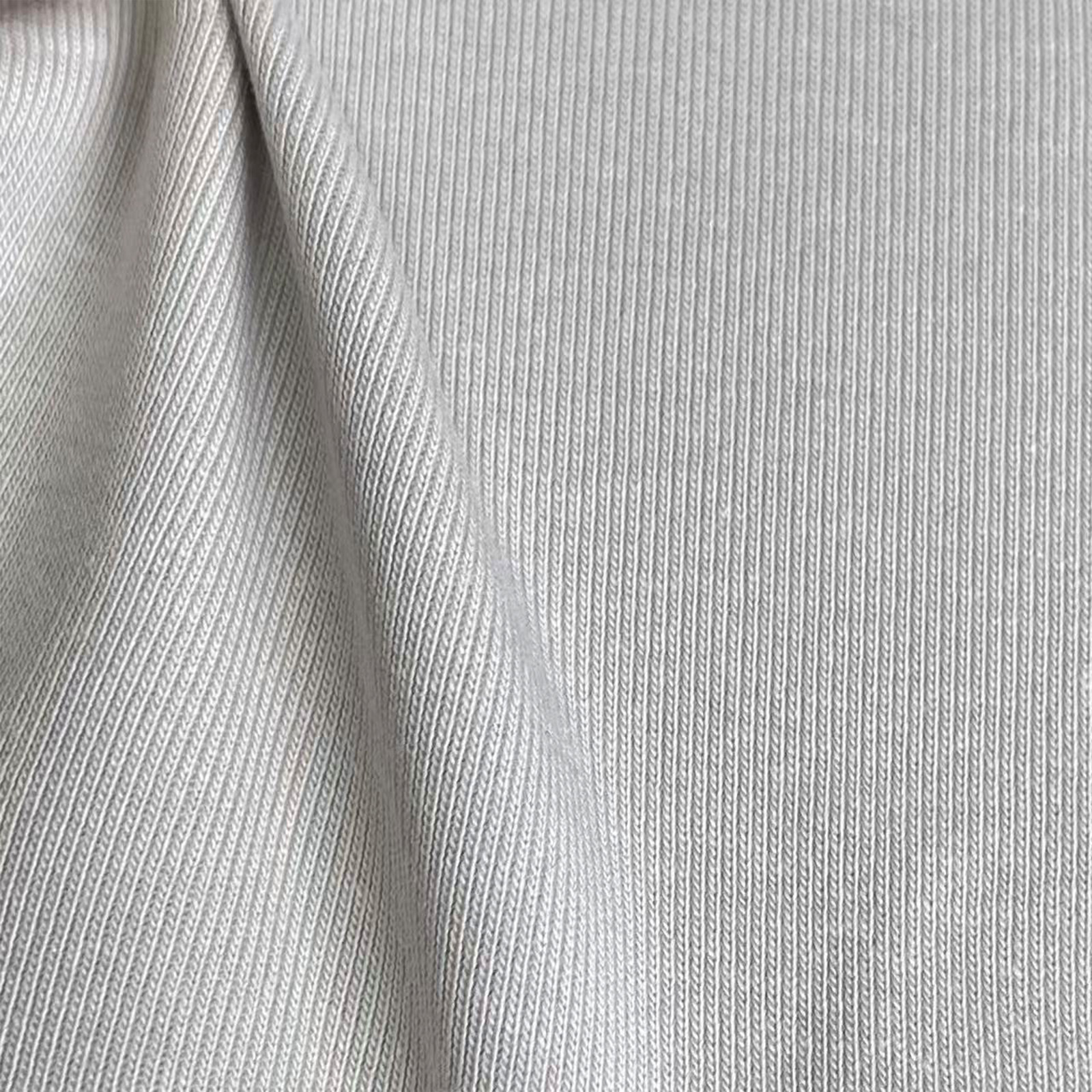 属性:紧密纺螺纹面料,纱线细腻均匀,布面光洁平整,无粗糙颗粒感。弹力柔和不僵硬,包裹性好,活动无束缚。质地紧实耐磨,抗皱性佳,适合制作服装收口、裤脚、领口等细节部位。